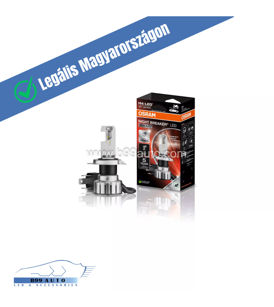A sikeres Osram Night Breaker LED család legújabb 3.generációs Smart +330%-os kivitele, amely H4 foglalatú izzók kiváltására alkalmas minőségi LED termék.