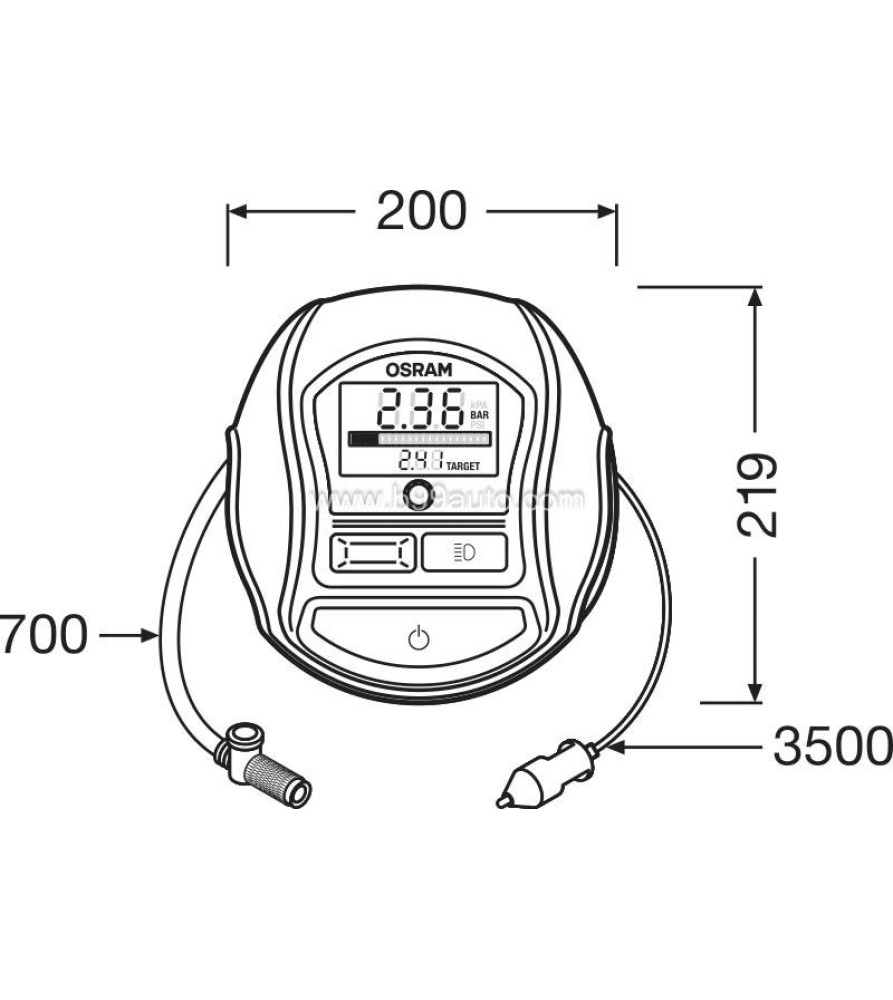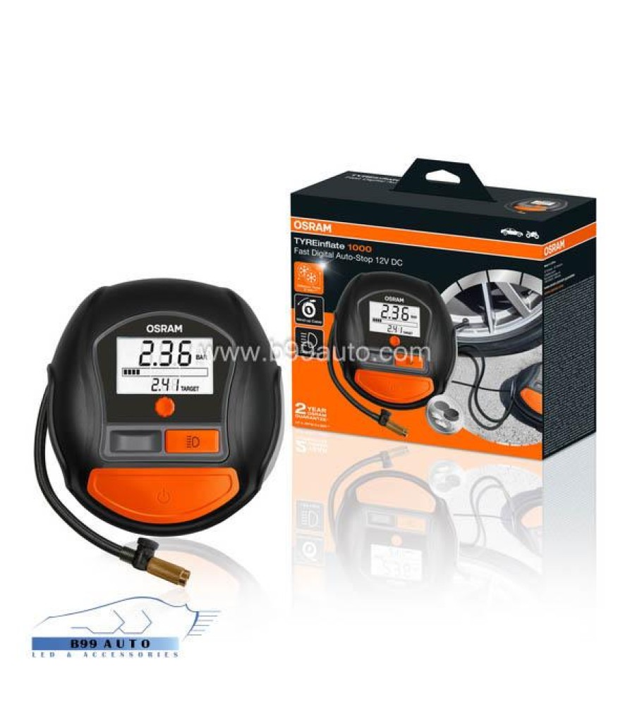 Az OSRAM TYREinflate 1000 egy gyors és megbízható digitális légkompresszor, amely ideális választás autók, furgonok, 4x4-es járművek, kisteherautók és pótkocsik abroncsainak felfújására. A modern kialakítás és a praktikus funkciók révén könnyen használható mindennapi és vészhelyzeti környezetben is.
