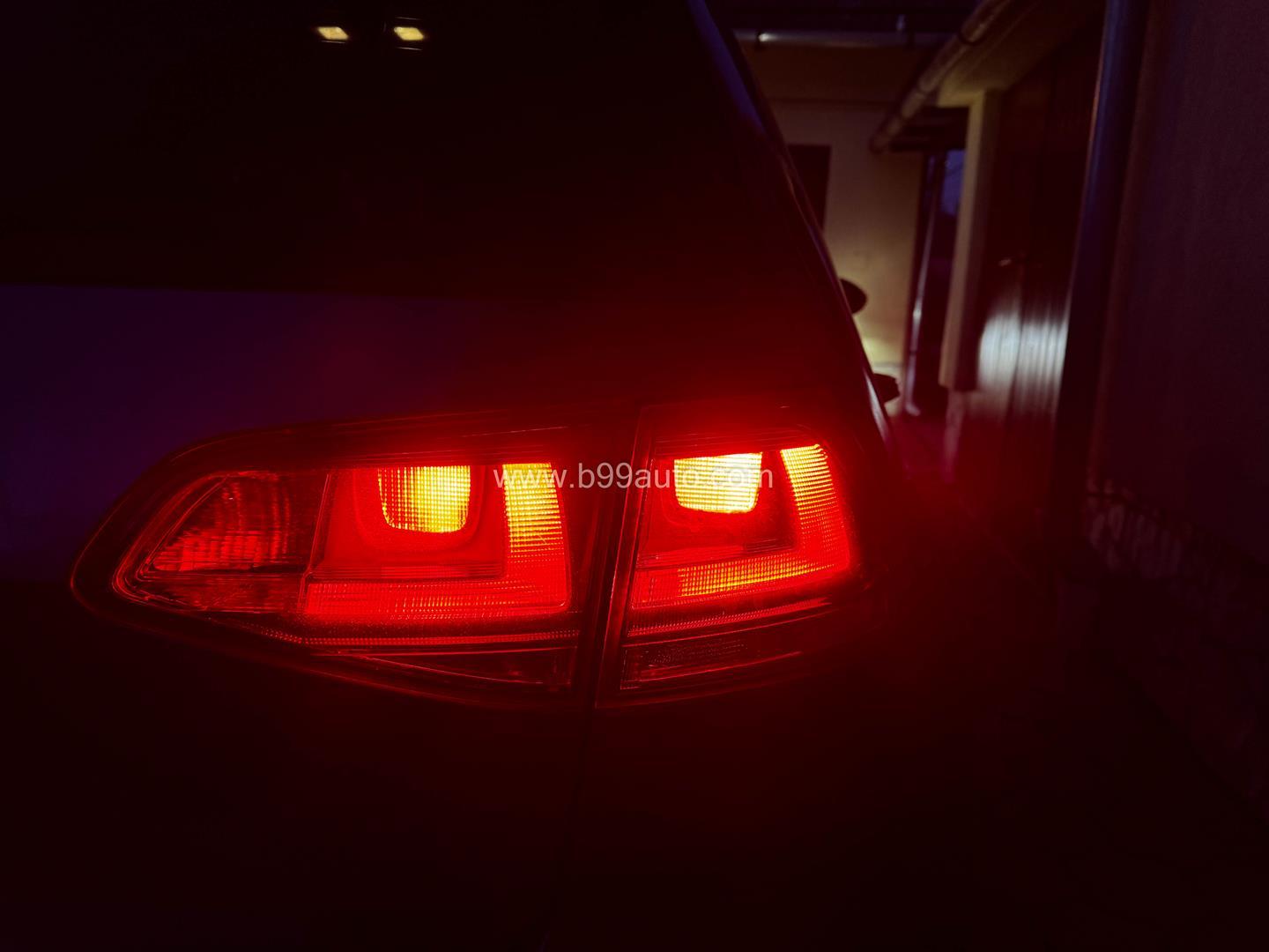 A Golf tulajdonosa az első LED szett után a hátsó lámpákban is kicserélte az elavult halogén izzókat piros színben világító LED-ekre. A fény erősebb és szebb, féklámpa esetén pedig hasznos funkció, hogy direktebb és gyorsabb a felvillanás. Természetesen mindezt ismét hibakódmentesen.