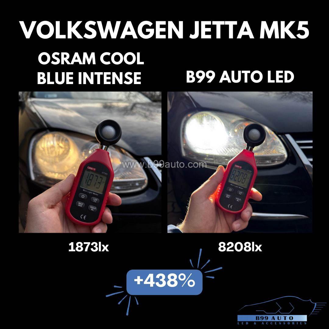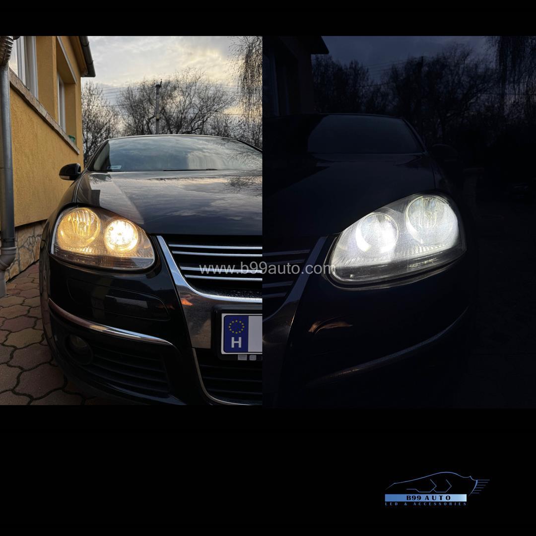 Ebben az autóban "erősített / emeltfényű" izzókat váltottak LED termékeink, a fényerőbeli különbség a képek között számokban is megtalálható. A különbség nem lett nagyobb, mintha egy alap izzóhoz viszonyítottuk volna, hiszen a kiindulási alap sem volt eltérő. Az autóban korábban próbáltak már olcsóbb LED-eket, azonban azok a tulajdonos elmondása szerint is össze-vissza világítottak és hibaüzenetet is adtak.