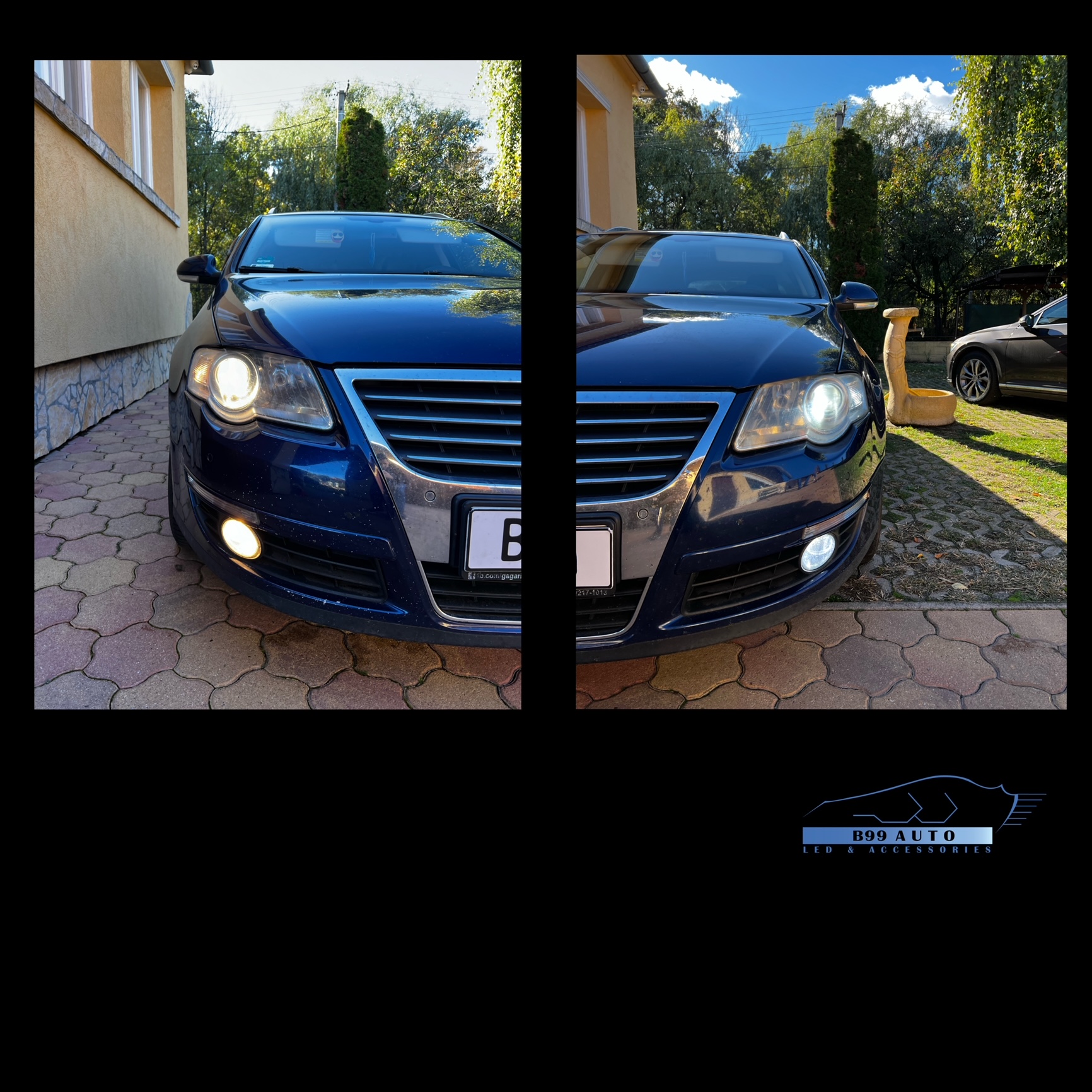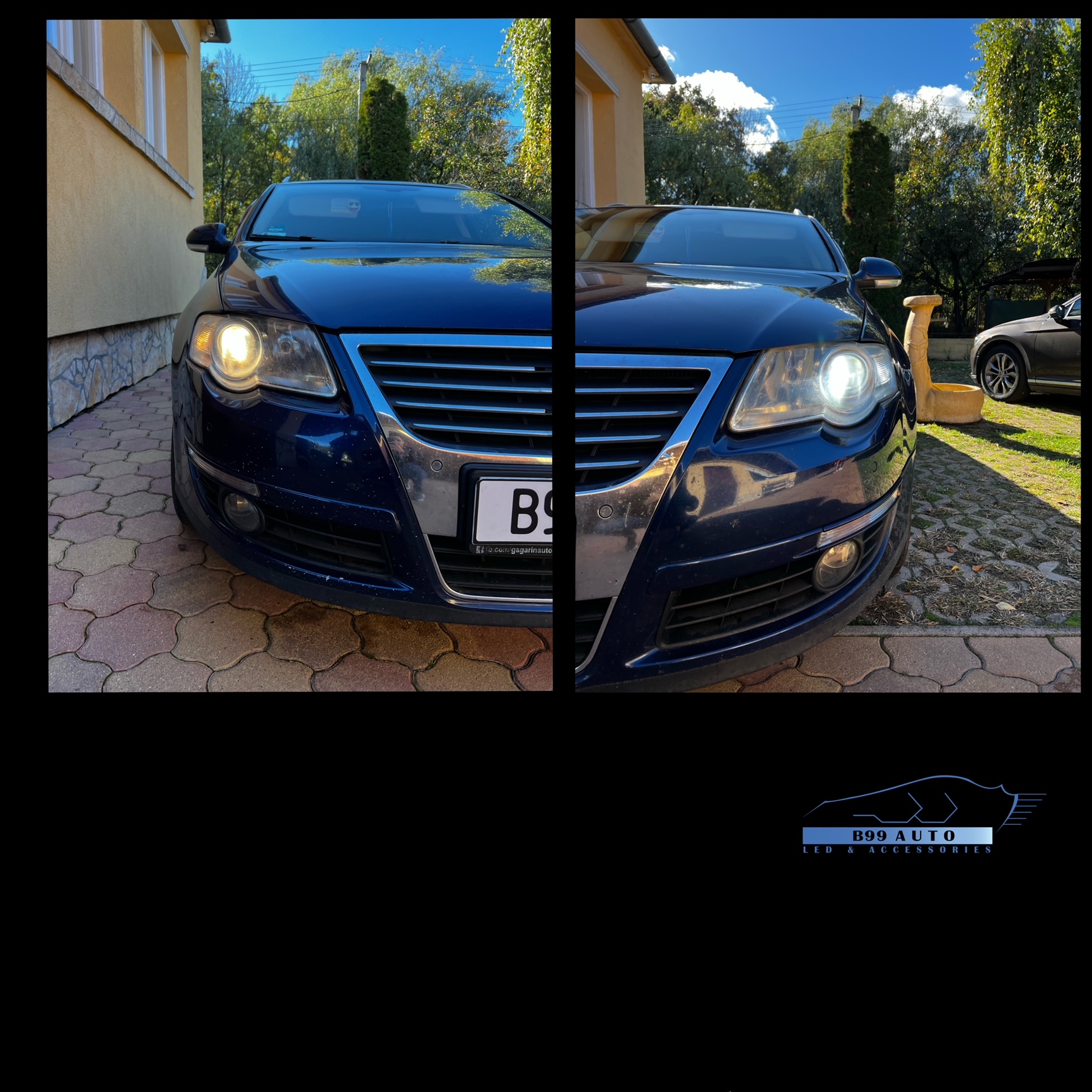 Ezen a Volkswagen Passat B6-on is cserére kerültek a halogén izzók. Helyükre korszerű LED-ek kerültek, amellyel immár biztonságos és élménnyel teli az éjszakai vezetés. A LED-ek beépítése nem igényli a porvédő kupakok kivágását, azok gyári állapotukban visszahelyezhetőek.
