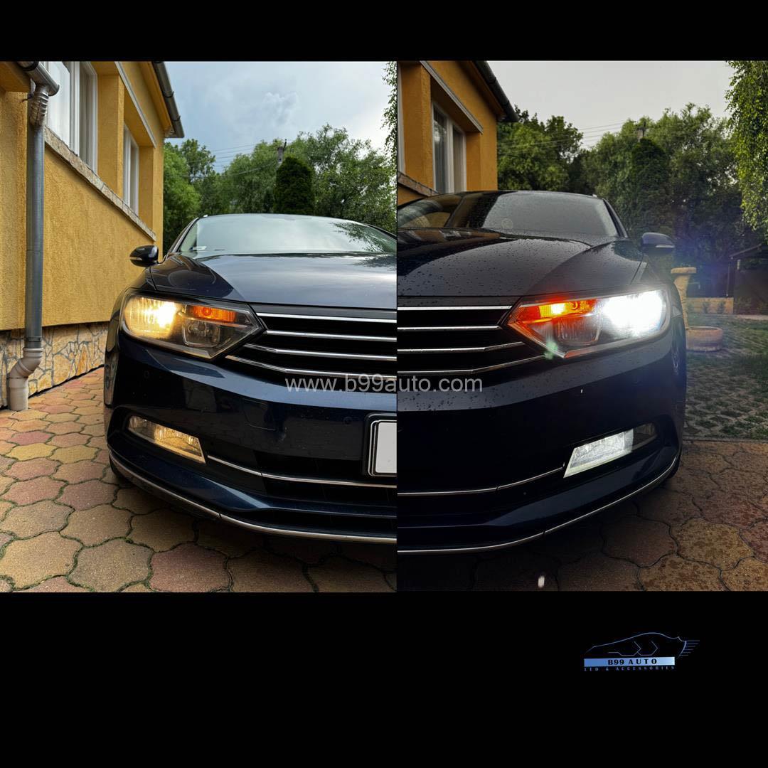 Ebbe a Passat B8-ba is bekerült népszerű teljes első szettünk. A gyári halogén izzókat váltották magas minőségű B99 AUTO LED termékek, amelyekkel az autó rendszere hibakódmentes maradt, a porvédő kupakok pedig átalakítás nélkül visszakerültek a helyükre.