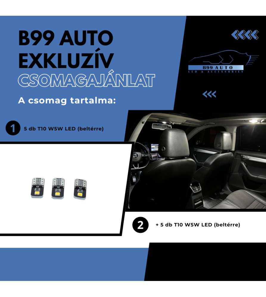 A csomag tartalmaz 10 db beltérre használható T10 W5W foglalatú LED-et.