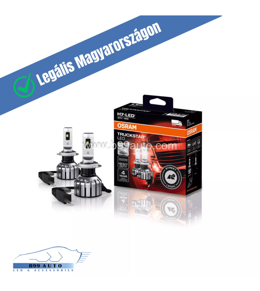 Az Osram Truckstar H7 LED egy 24V-s rendszerekhez kifejlesztett magas minőségű, H7 izzókat helyettesíteni hivatott termék. Fényereje lehetővé teszi a zavartalan éjszakai közlekedést tehergépjárművekkel is. Jégfehér színhőmérséklete pedig esztétikusabb, modernebb megjelenést kölcsönöz a járműveknek.