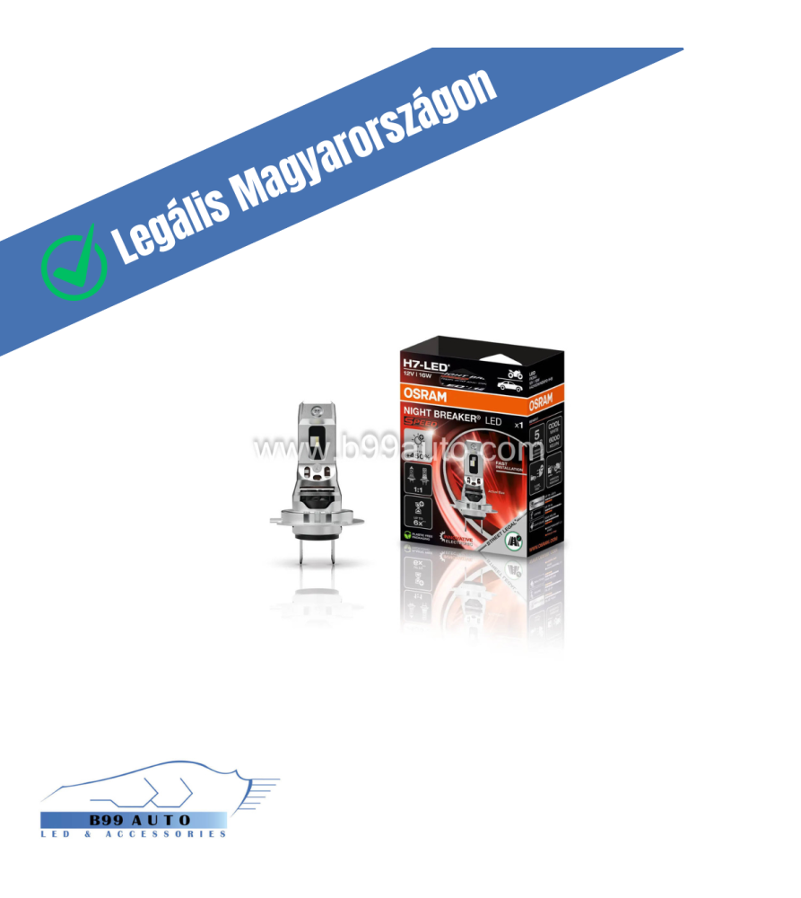 Az OSRAM megújított NIGHT BREAKER LED SPEED H7 450%-os fényszórói forradalmian innovatív, utólag beépíthető LED-es fényszórólámpák, amelyek számtalan előnyt biztosítanak: legálisan használhatóak közúton, a Plug & Play megoldásnak köszönhetően gyorsan felszerelhetőek, kiemelkedő látási viszonyokat és láthatóságot garantálnak, és számos egyéb előnyős tulajdonság jellemzi őket. Az innovatív technológia akár 450 %-kal nagyobb fényerőt és akár 240 m-es megvilágítási távolságot tesz lehetővé. A maximum 6000 K-es hidegfehér fény pedig modern, korszerű megjelenést kölcsönöz a járműnek.